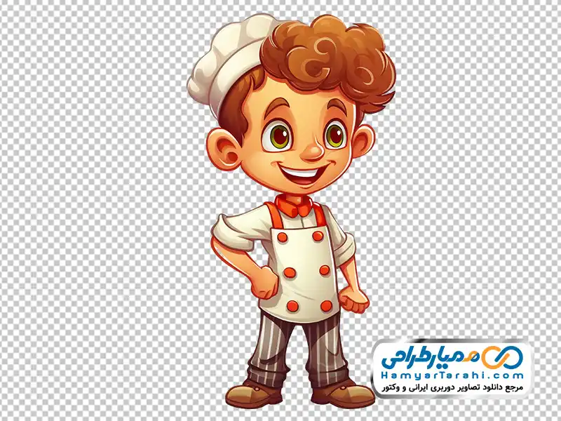 تصویر کارتونی پسر بچه با لباس سرآشپز، را با بهترین کیفیت دانلود کرده و در طراحی پانل لایه باز مدارس استفاده کنید.