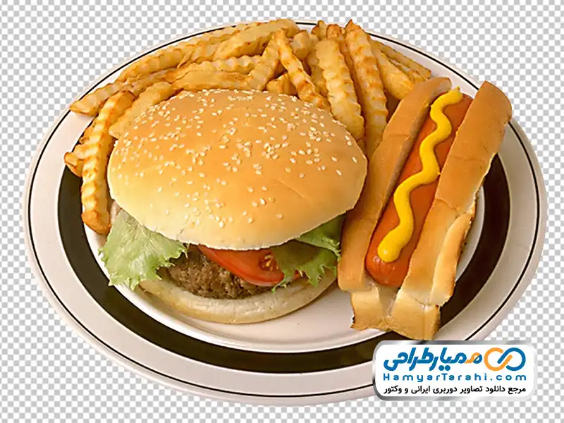 دانلود فایل png همبرگر و هات داگ داخل بشقاب