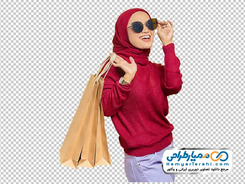 عکس png دختر محجبه با ساک خرید، را با بهترین کیفیت دانلود کرده و در طراحی بنر لایه باز فروشگاه پوشاک بانوان استفاده کنید.