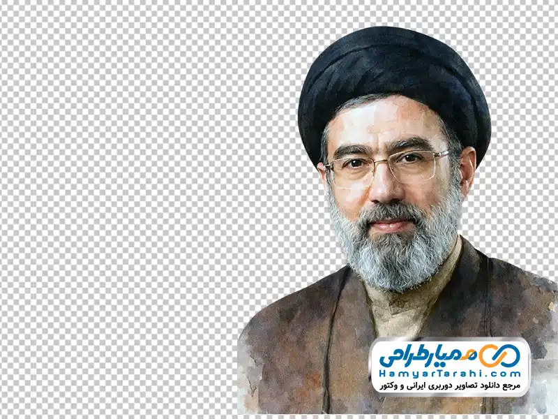 عکس بدون پس زمینه سید مجتبی حسینی خامنه ای با فرمت png بوده؛ یعنی تصویر اصلی از بک گراند خود برش خورده است. از همین رو در هر طرح لایه باز پوستر یا بنر ویژه مناسبت های ملی به راحتی قابل استفاده خواهد بود.