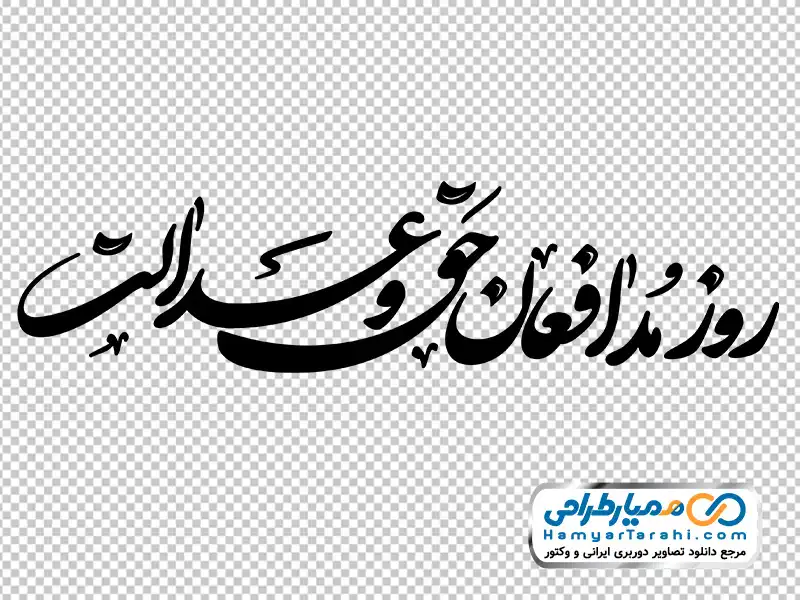 خوشنویسی روز مدافعان حق و عدالت با فرمت png بوده؛ یعنی به راحتی می توانید در طراحی بنر یا پوستر از آن استفاده کنید.