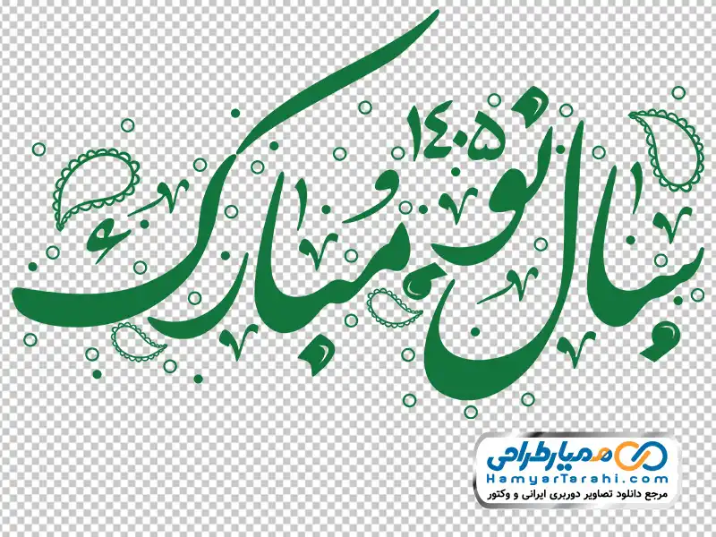 خوشنویسی عید سال نو 1405 مبارک با فرمت png بوده؛ یعنی به راحتی می توانید در طراحی بنر یا پوستر ملی از آن استفاده کنید.