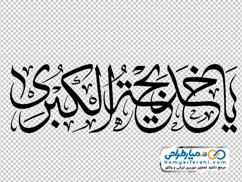خوشنویسی یا خدیجه الکبری با فرمت png بوده؛ یعنی به راحتی می توانید در طراحی بنر یا پوستر از آن استفاده کنید.