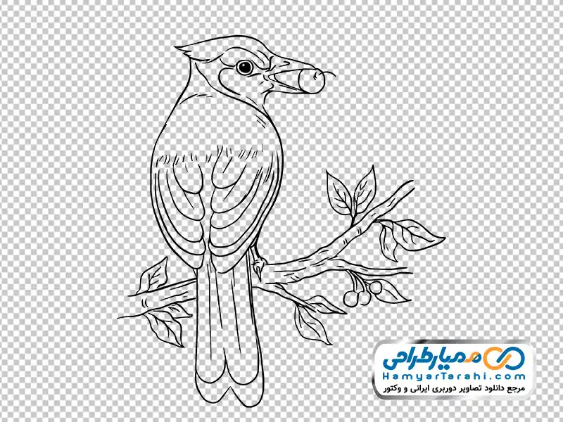 وکتور سیاه و سفید پرنده نشسته روی شاخه