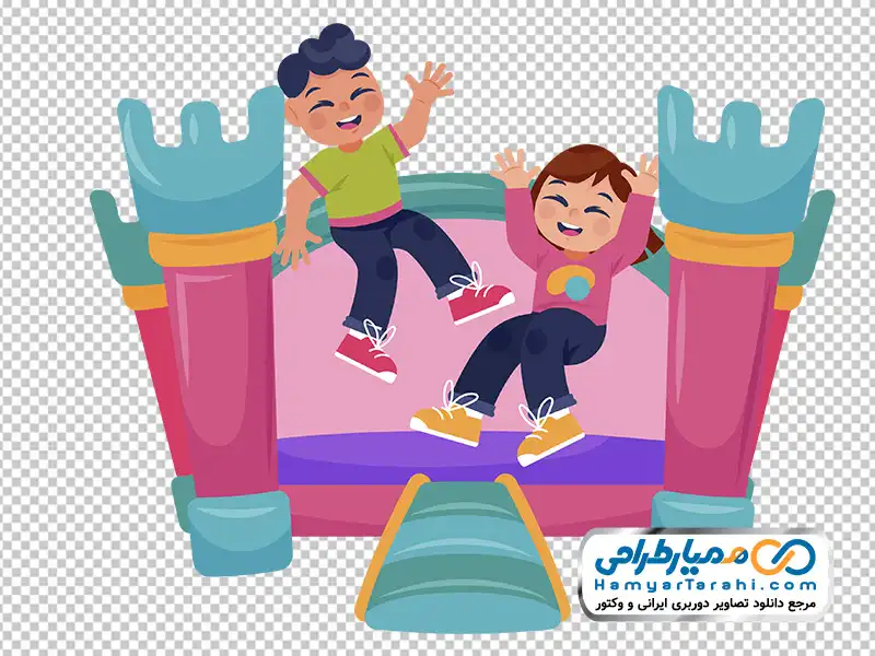 دانلود فایل png بچه ها در حال پریدن روی قلعه بادی