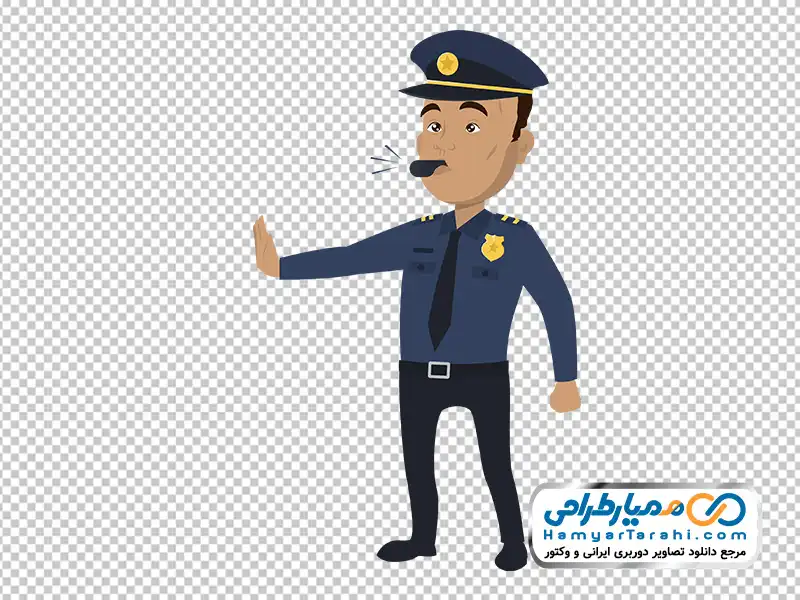 عکس بدون پس زمینه پلیس با سوت با فرمت png بوده؛ یعنی تصویر اصلی از بک گراند خود برش خورده است. از همین رو در طرح لایه باز پوستر به راحتی قابل استفاده خواهد بود.