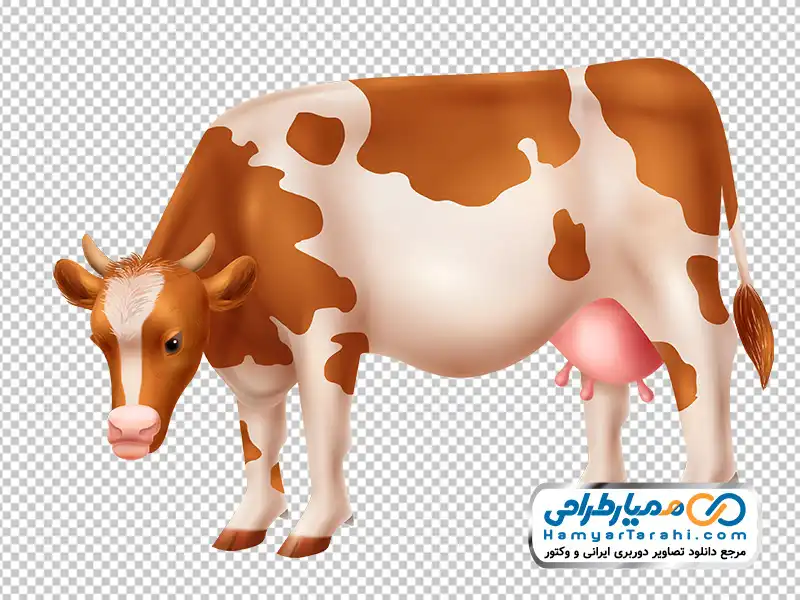 عکس بدون پس زمینه گاو سفید و قهوه ای با فرمت png بوده؛ یعنی تصویر اصلی از بک گراند خود برش خورده است. از همین رو در طرح لایه باز کارت ویزیت لبنیاتی به راحتی قابل استفاده خواهد بود.